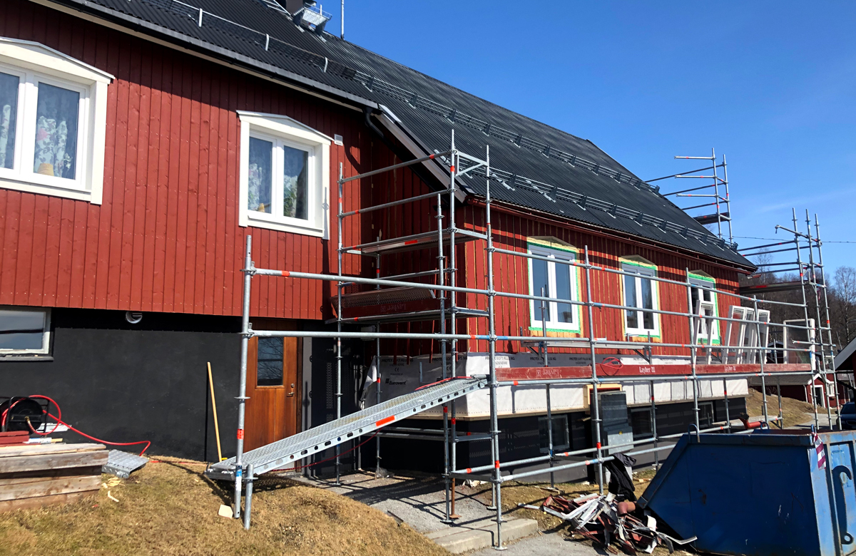 Contractor i Hemavan genomför en fasadrenovering på ett hyreshus på Slalomvägen i Tärnaby, ett stenkast från där Ingemar Stenmark…
