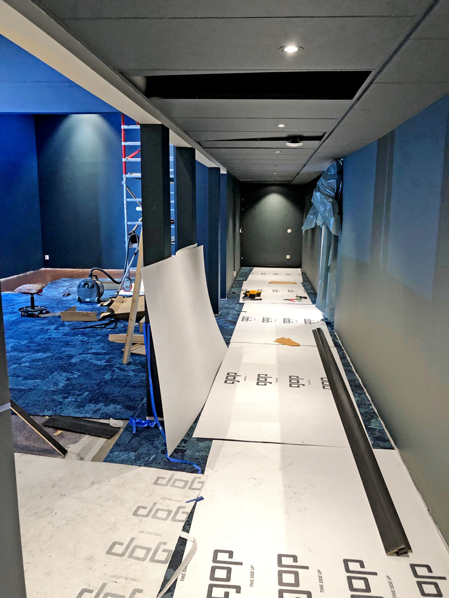 På Terminalvägen i Timrå byggs det om en fastighet åt Sunds Fibertech där deras verksamhet samtidigt pågår vilket ställer höga krav på kommunikationen med kunden. En inredare fick i uppdrag att ta fram ett nytt utseende på kontorslokalen som kommer att gå helt i blått; golv, väggar och tak. Till och med köket går i blått.