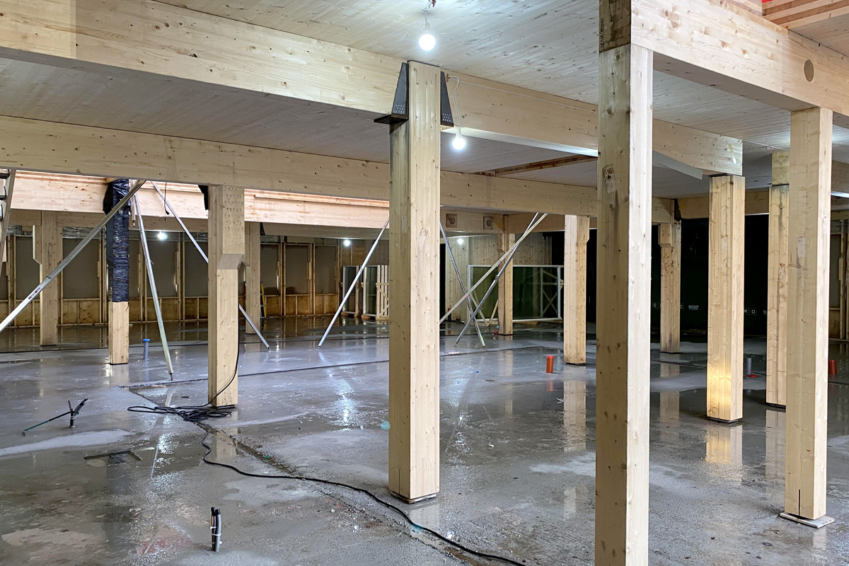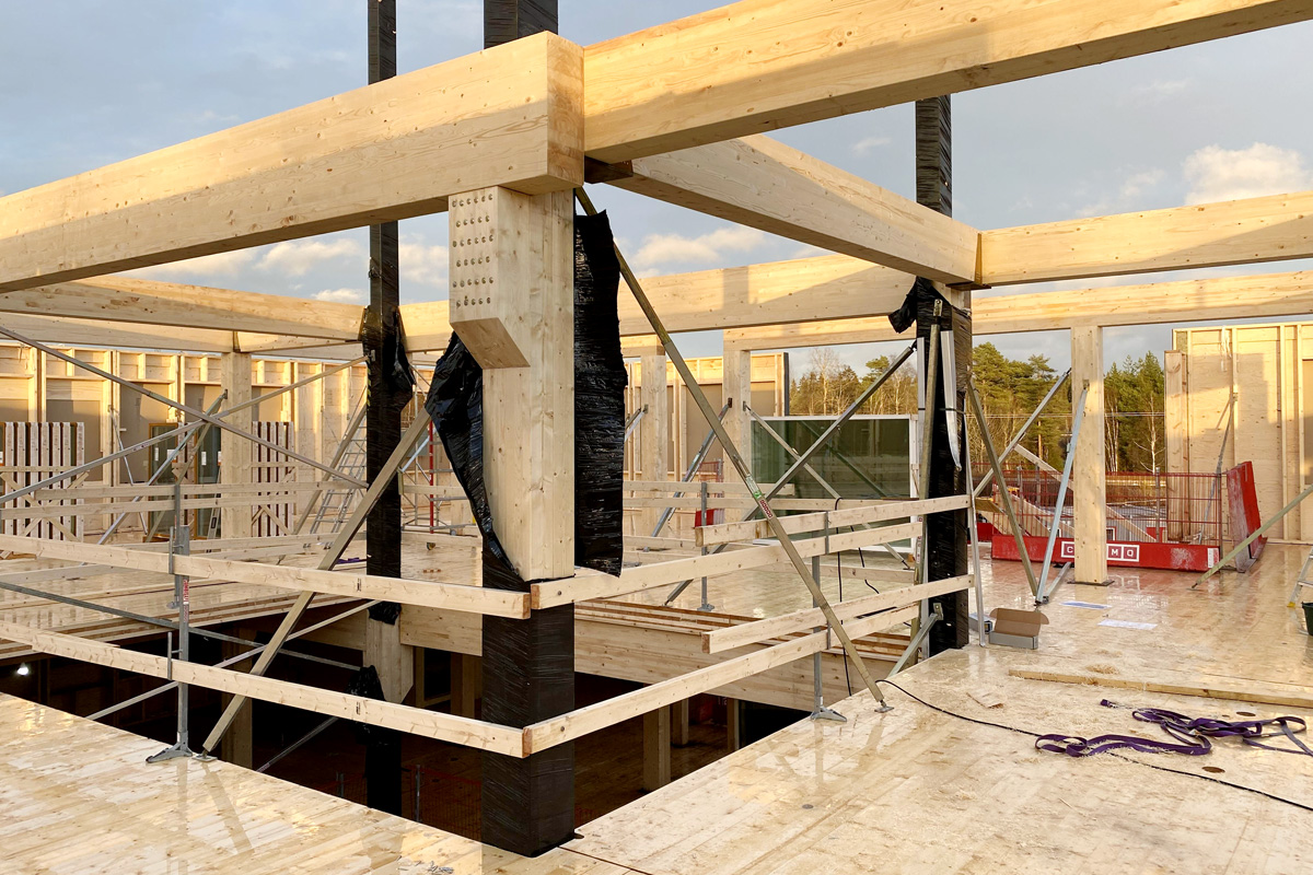 Bygget av Bravidas nya lokaler på Västerslätt i Umeå går framåt och vid nyår har produktionen nått halvvägs. När nyhetsbrevet pratar med platschefen Kim Bergström är man mitt uppe i stomresningen på plan tre. Här blir det limträbalkar och sedan KL-träskivor från Martinsons i Bygdsiljum.