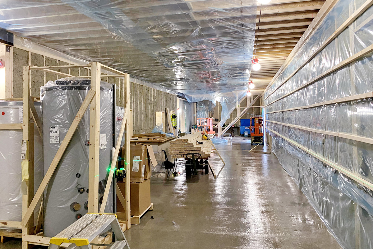 I centrum av huset framträder limträpelare som ger härlig träkänsla under ett stort takfönster. Bygget ska stå klart månadsskiftet maj/juni 2022 och beställare är Umeå Logistikpark.