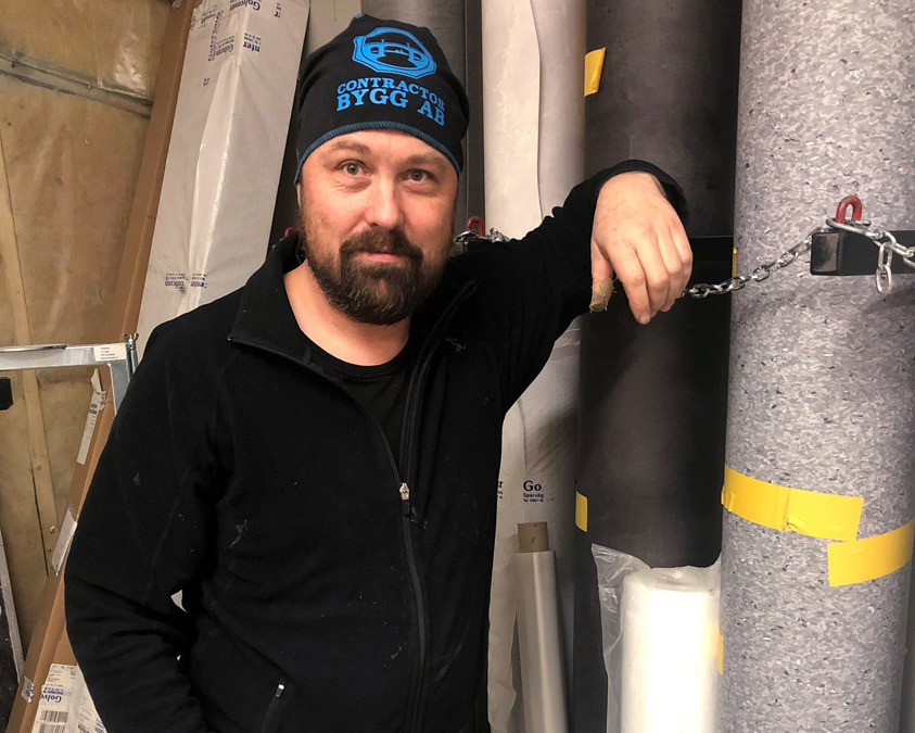– Jag har ju jobbat med mattläggning även före jag kom hit till Contractor, men som med så mycket annat är jag självlärd. Jag har gått med andra mattläggare flera år och gjort mina timmar. Så när frågan kom upp om att även skaffa ett yrkesbevis tänkte jag att, det säkert är bra att ha.