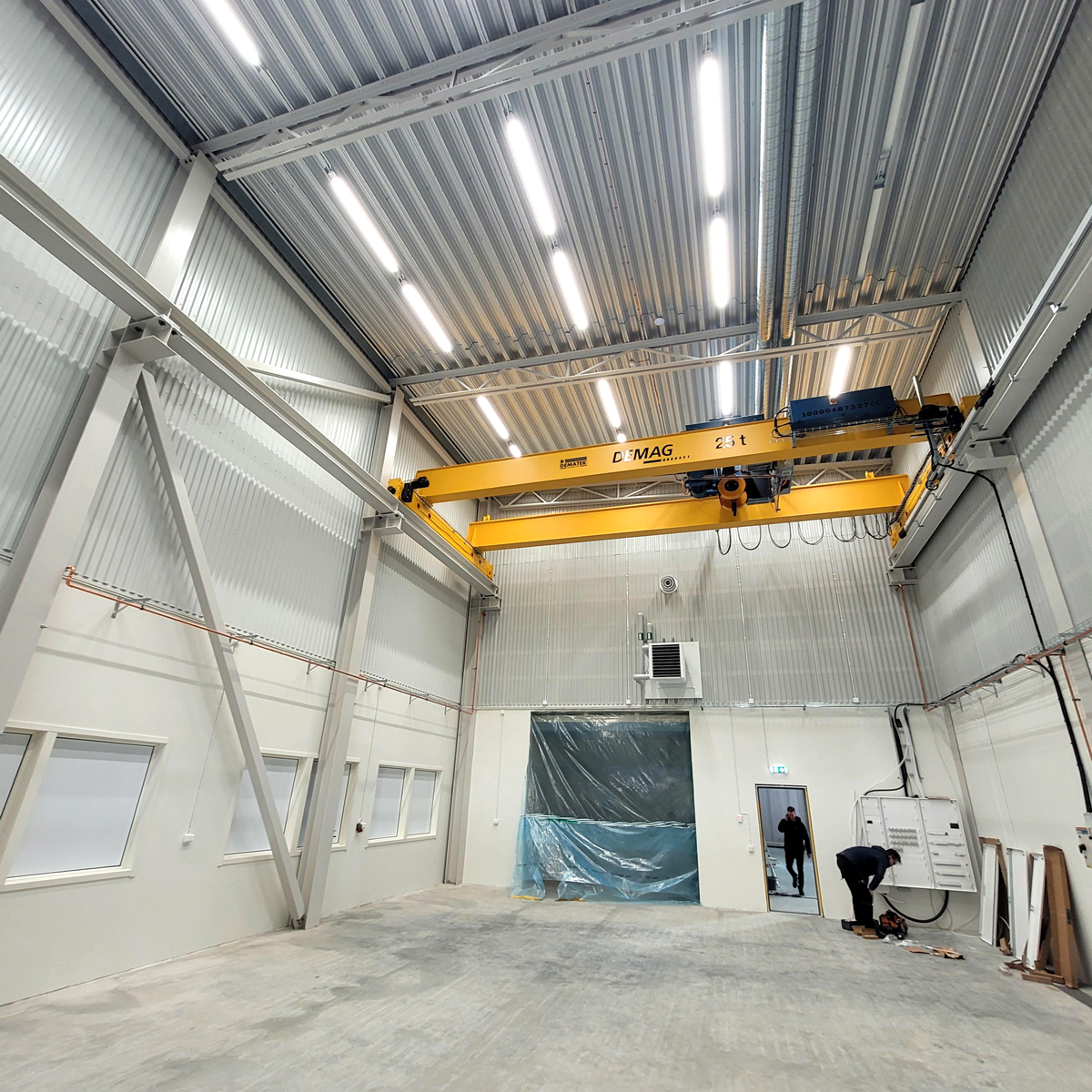 – Invändigt är det färdigt till 95 procent, utvändigt är det bland annat en del fasadarbete kvar. Det känns skönt att vi snart är i mål med det här omfattande projektet. Slutresultatet blir en jättefin industribyggnad, väldigt modern och fräsch, säger Magnus Ståhlberg, platschef.